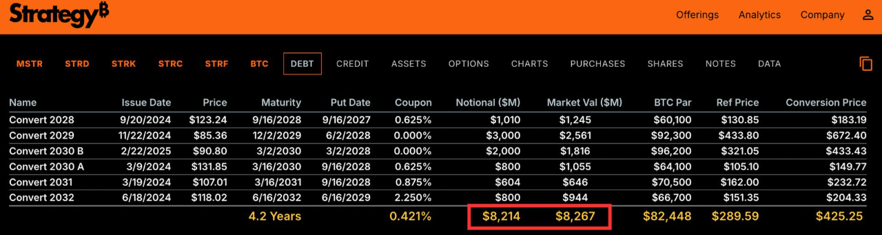 Strategy (công ty nắm giữ "Bitcoin" lớn nhất thế giới) đang rơi vào tình huống tương tự nêu trên, với khoản nợ 8 tỷ USD - áp lực trả nợ sẽ tăng mạnh bắt đầu từ năm 2028 - Con số mà bất kỳ công ty nào cũng phải sợ