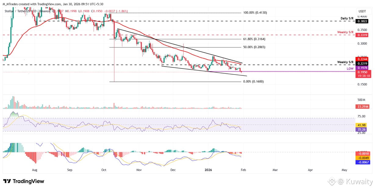 أغلق سعر ستيلر دون مستوى المقاومة الأسبوعي البالغ 0.22 دولار في 18 يناير وانخفض بنحو 9% على مدار الأسبوعين التاليين. في وقت كتابة هذا التقرير يوم الجمعة، يتم تداول XLM عند 0.19 دولار، وهو مستوى لم يُشاهد منذ 11 أكتوبر.