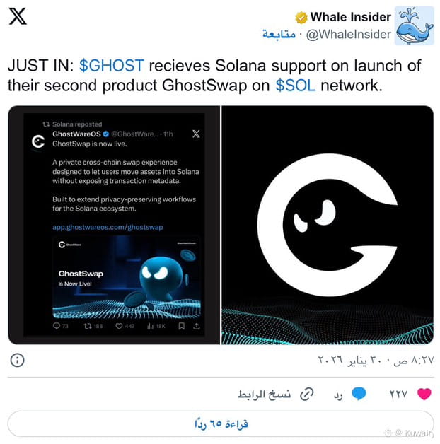 يؤكد إطلاق GhostSwap على Solana طموحات المشروع متعددة الشبكات. فلم يعد مستخدمو DeFi يلتزمون بشبكة واحدة. بل يتبعون السيولة والسرعة والفرص.