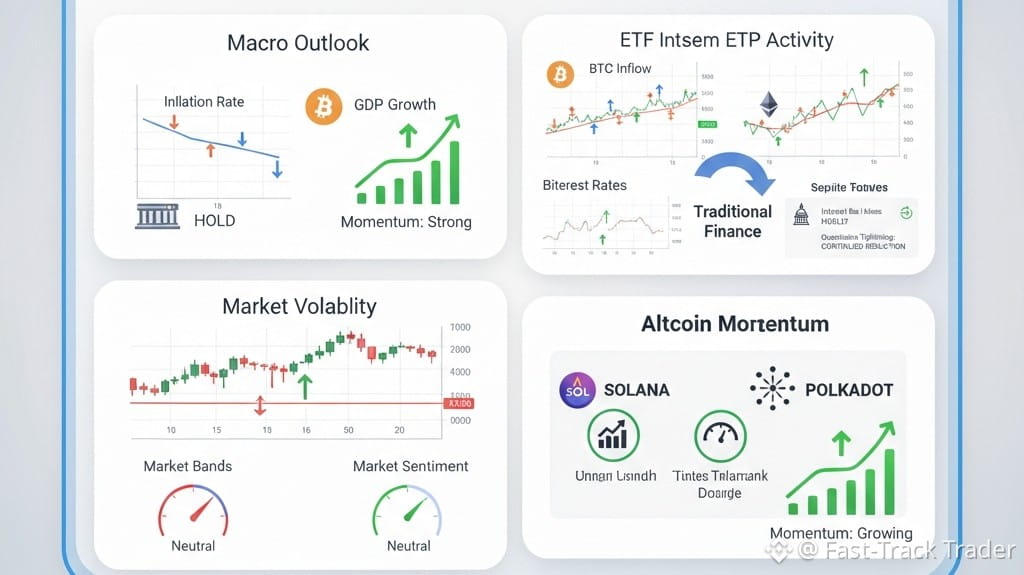 Recent market updates emphasize the continued leadership of macro drivers — including central bank signals and capital flows — with Bitcoin and top altcoins navigating volatile conditions. Analysts highlight the importance of ETF outflows, liquidation clusters, and sentiment indices in forming the current market backdrop.