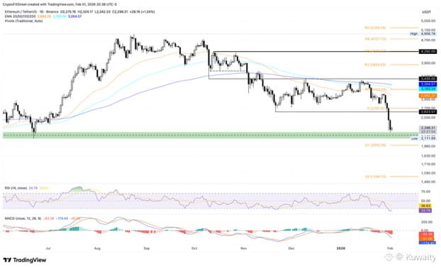 إذا سجل إيثريوم إغلاقًا يوميًا دون 2111 دولار، فسيفتح الباب أمام نقطة المحور S1 بالقرب من الحاجز النفسي 2000 دولار.