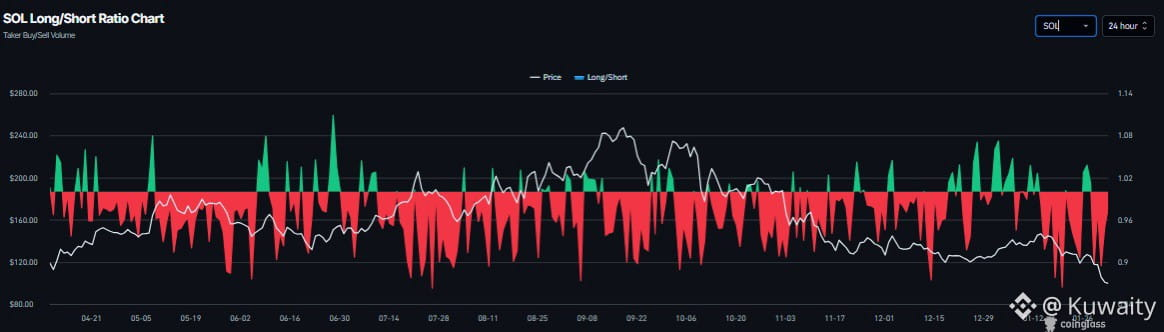 رسم بياني لنسبة الرهانات الطويلة إلى القصيرة لسولانا. المصدر: Coinglass