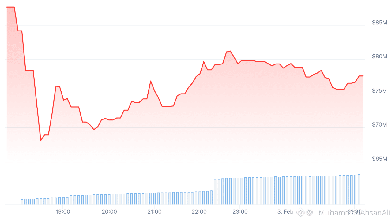 The chart opens with a sharp vertical dump from the $88–90M range down toward ~$68M.