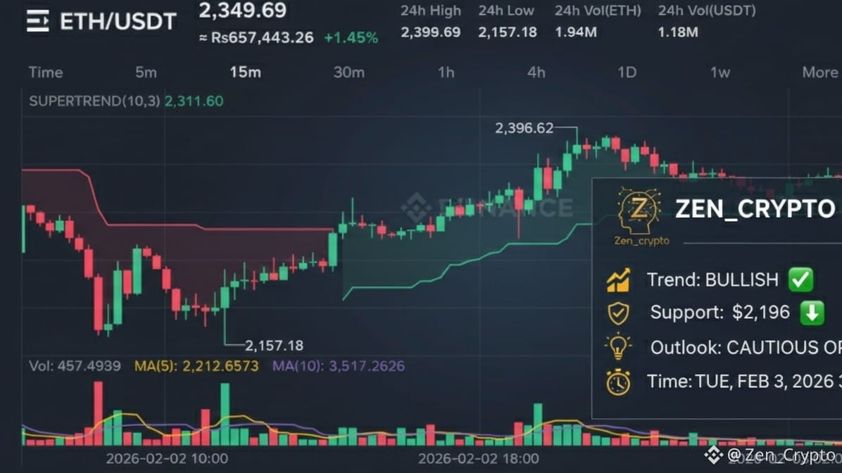 $ETH Ethereum is currently trading at $2,349, showing a steady +1.45% recovery. The overall market sentiment looks positive for now. 📈