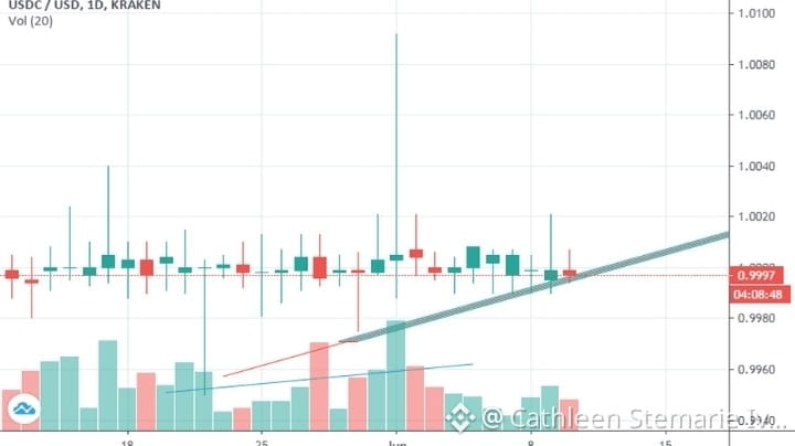 $USDC continues to trade tightly around its $1.00 peg, showing minimal volatility compared to other crypto assets — typical for a regulated stablecoin. Recent price oscillations remain within a very narrow band near parity. �