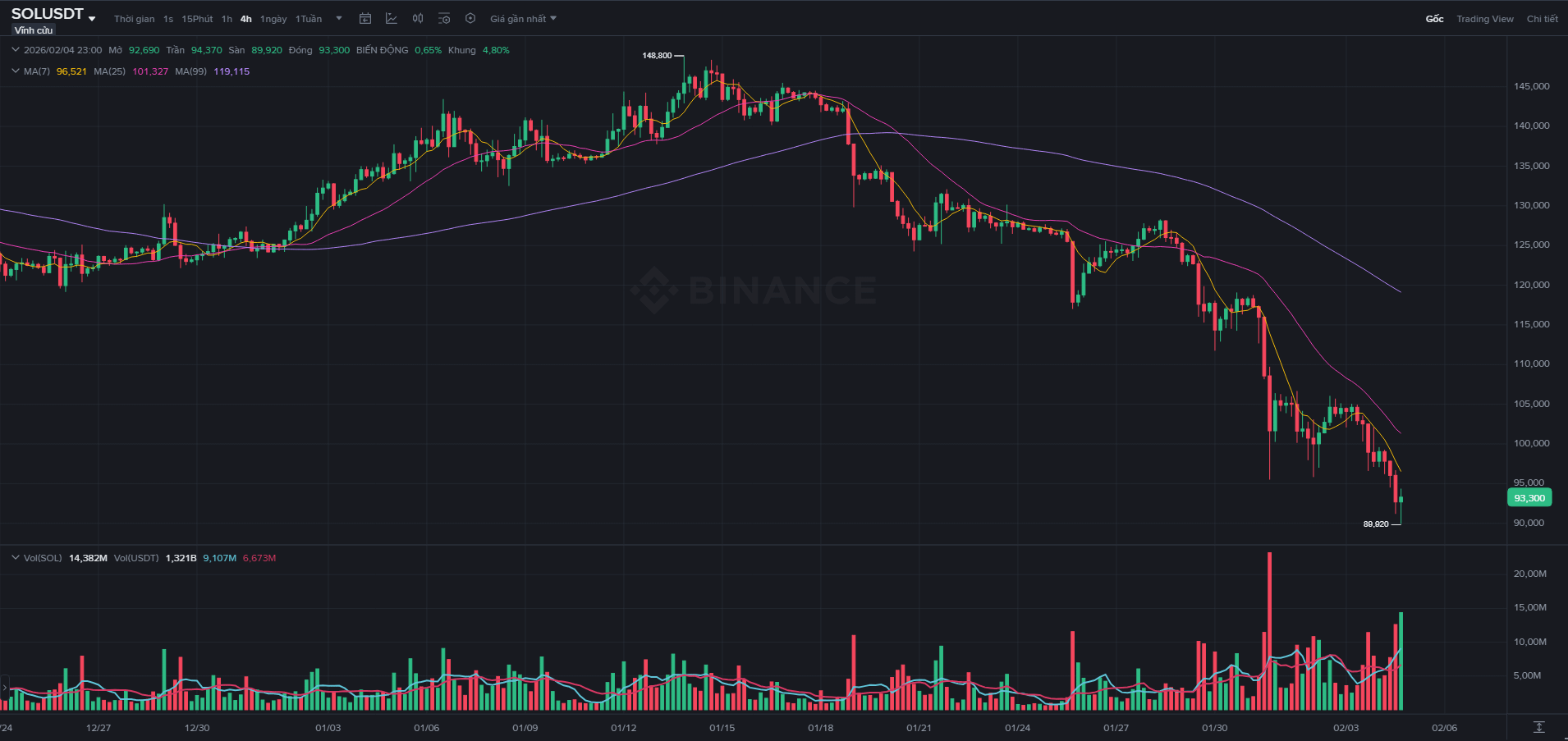 Cấu trúc giá SOL vẫn rất xấu. Nhịp xanh hiện tại chỉ được xem là nhịp hồi kỹ thuật để giảm bớt trạng thái quá bán. Rủi ro thủng đáy $90 vẫn rất cao.