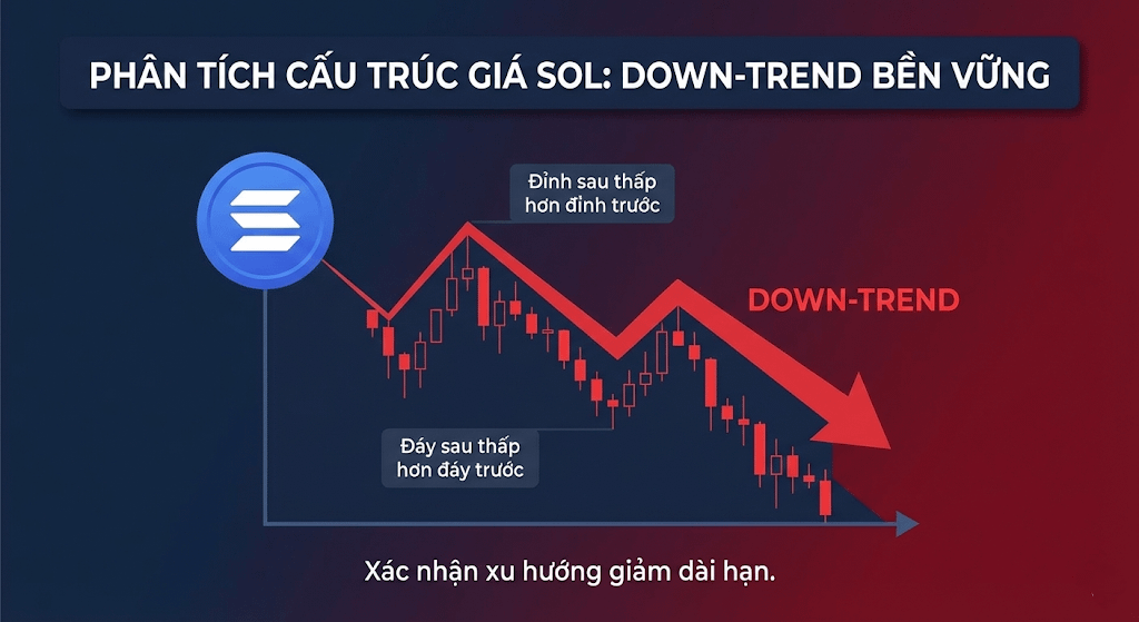 SOL liên tục tạo ra các mức Đáy sau thấp hơn đáy trước và Đỉnh sau thấp hơn đỉnh trước.