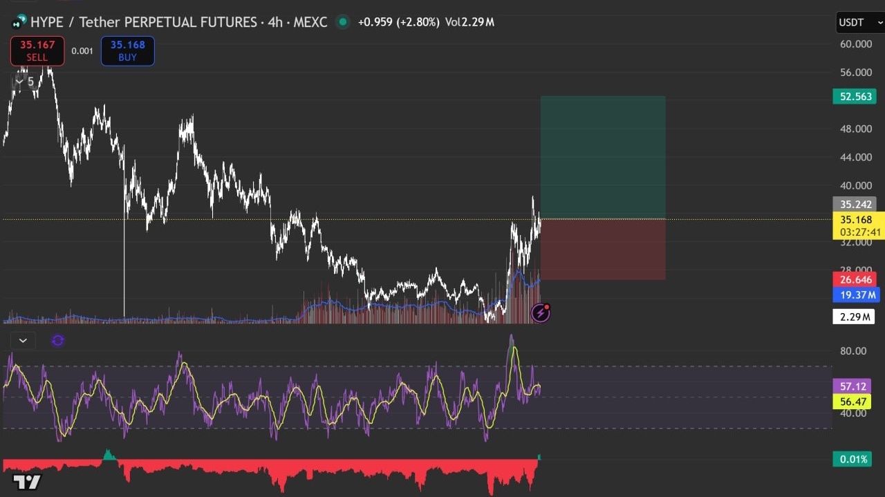 [Image: Insert a 1H chart of HYPE/USDT showing the bounce off support]