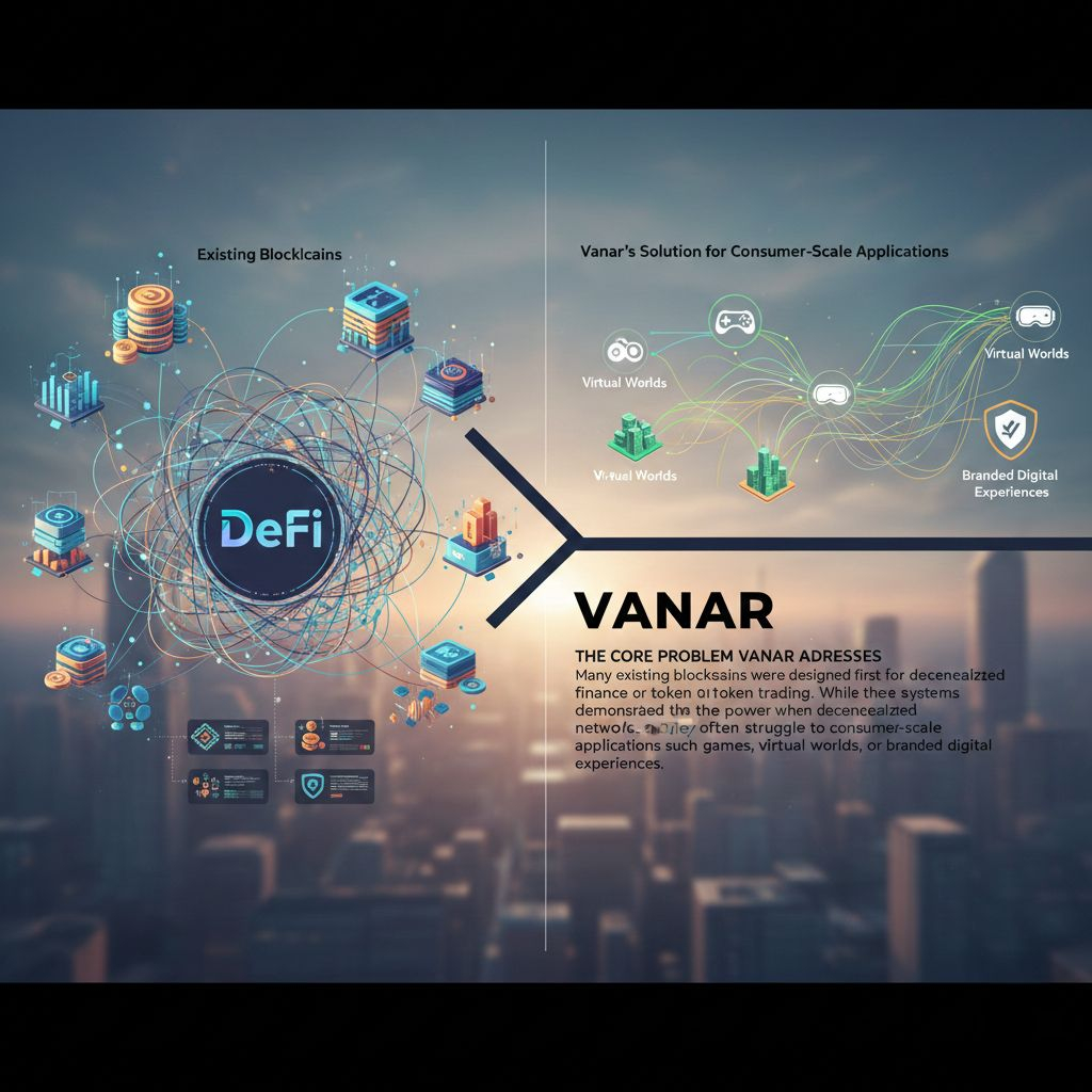 #vanar Many existing blockchains were designed first for decentralized finance or token trading. While these systems demonstrated the power of decentralized networks, they often struggle when applied to consumer scale applications such as games, virtual worlds, or branded digital experiences.