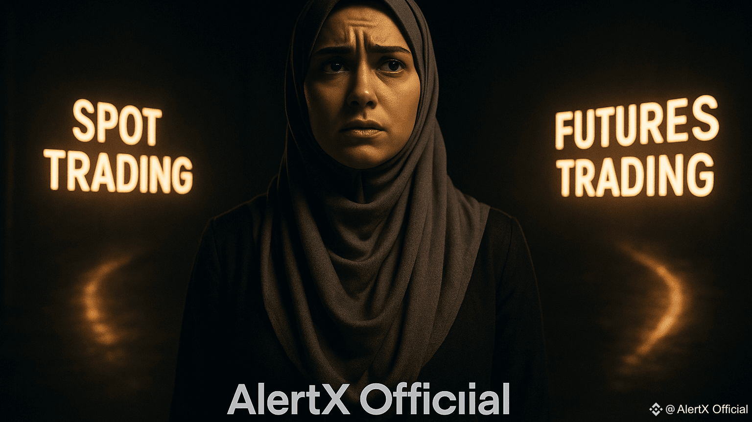👀 So I saw this post by AlertX Official with that confused Muslim girl staring at “Spot Trading” and “Futures Trading.”