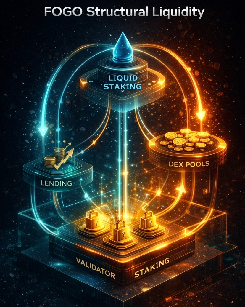 Take staked FOGO. When tokens move into validator-backed staking pools, they are not removed from the economy. Through liquid staking integrations, that same capital can circulate across lending, LP positions, and trading pairs. The base layer secures consensus. The derivative layer supports DeFi. Both layers reinforce each other.