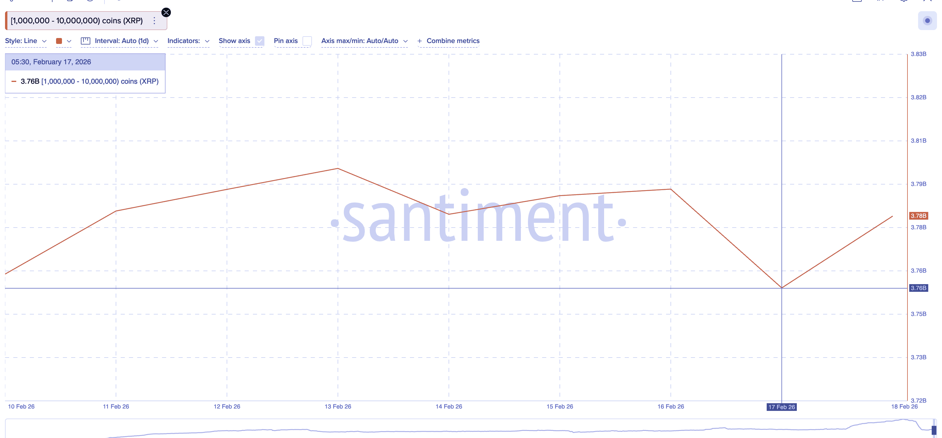 Addresses holding between 1 million and 10 million XRP have been particularly active, adding roughly 20 million coins to their combined holdings since February 17. This whale cohort now controls approximately 3.78 billion XRP, representing strategic accumulation rather than random retail purchasing.