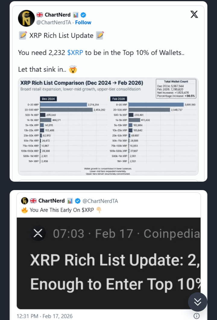 XRP’s continued role in cross-border payments keeps institutional interest strong, while distribution data shows retail engagement remains healthy. If enterprise adoption accelerates, today’s ownership thresholds could look extremely small in hindsight.