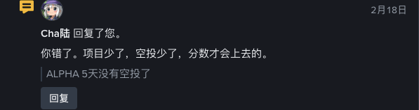 前天写的alpha的文章,下面评论区大家都在说项目少了,空投少了,积分就上去了。