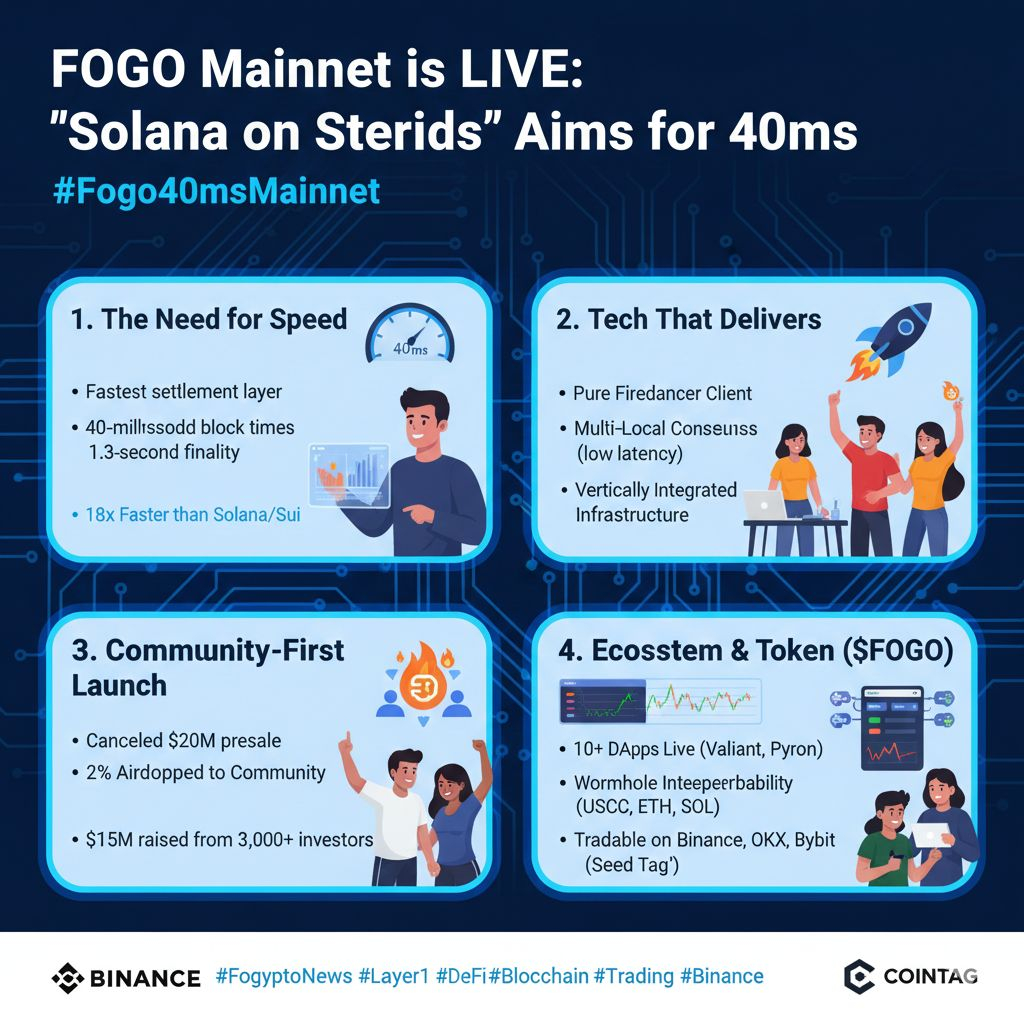 The crypto space loves a good performance race, and the latest contender has officially entered the arena. @Fogo Official , the highly anticipated Layer 1 blockchain built on the Solana Virtual Machine (SVM), launched its public mainnet on January 15, 2026 . But this isn't just another "Ethereum-killer" story; Fogo is making a very specific bet on speed, and the numbers are frankly staggering.