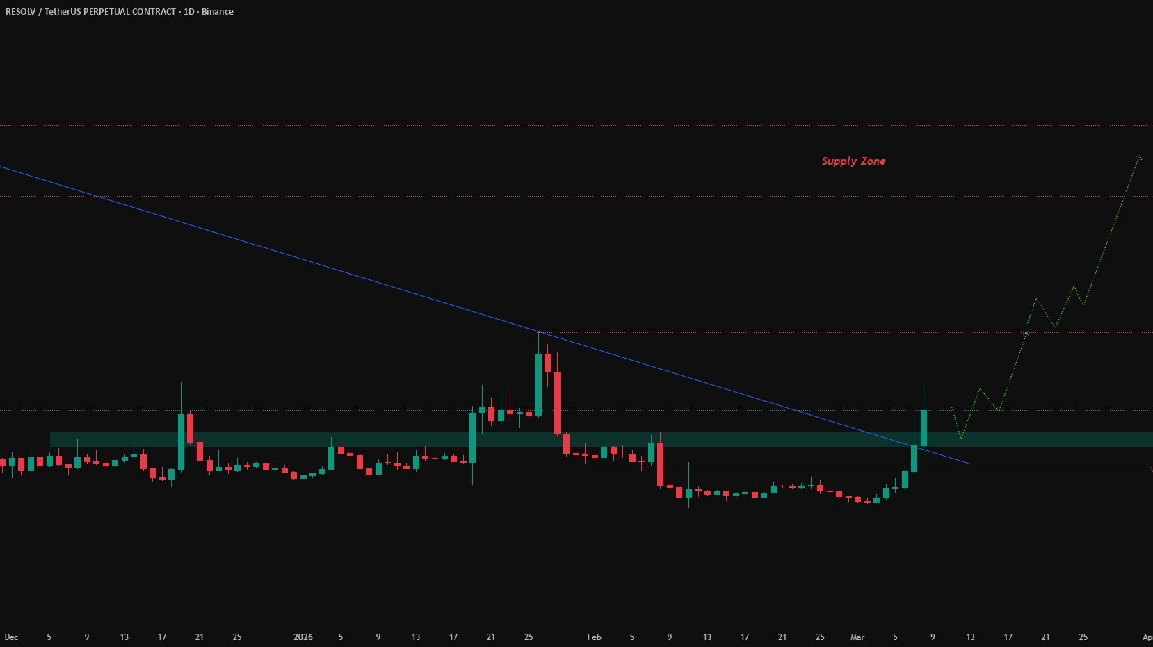 إذا استمر المشترون في السيطرة، فإن RESOLV لديه طريق واضح نحو مستوى المقاومة التالي، وكسر ناجح هناك يمكن أن يفتح الباب لتوسع أكبر بكثير نحو منطقة العرض الرئيسية أعلاه 🚀
