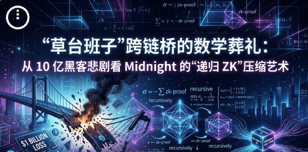 机构的大资金不敢碰,散户的隐私资产不敢过。 跨链桥,已经成了 Web3 走向合规化和万亿估值道路上,最肮脏、最致命的短板。难道数学,真的无法在这个死局里战胜人性吗?直到我把 @MidnightNetwork 白皮书里关于 Recursive zk-SNARKs(递归零知识证明) 的章节彻底扒拉清楚,我才终于明白,什么叫作真正的“密码学主权”。Midnight 做了一件在这个圈子里堪称神迹的密码学工程压榨:它利用递归证明技術,把一整条主网坚不可摧的安全合法性,“压缩”成了一个不到 1KB 的密码学快照。
