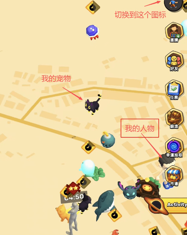 行走模式:这个游戏有一个特点,玩家不需要自己亲自出去行走。也可以点一下行走模式,就可以移动宠物随便逛了。非常方便我们去收集其他地方的资源!