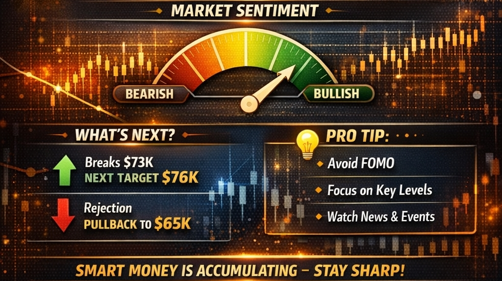 Bitcoin (BTC) is trading around $71K–$73K, facing resistance near $73K �