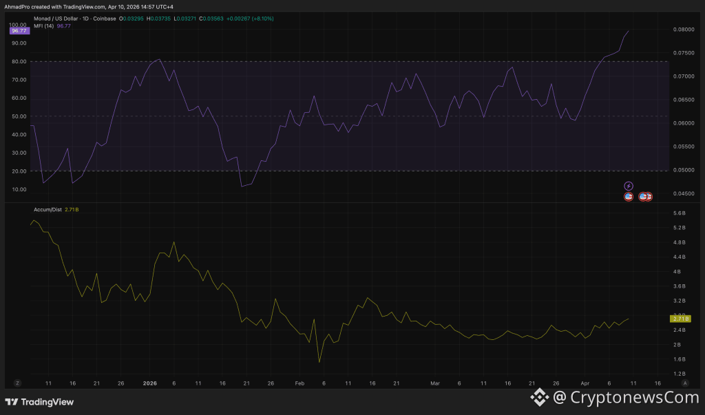 If MON clears $0.040 on volume comparable to today’s session, the path to the all-time high near $0.049 opens without a major structural obstacle in between.