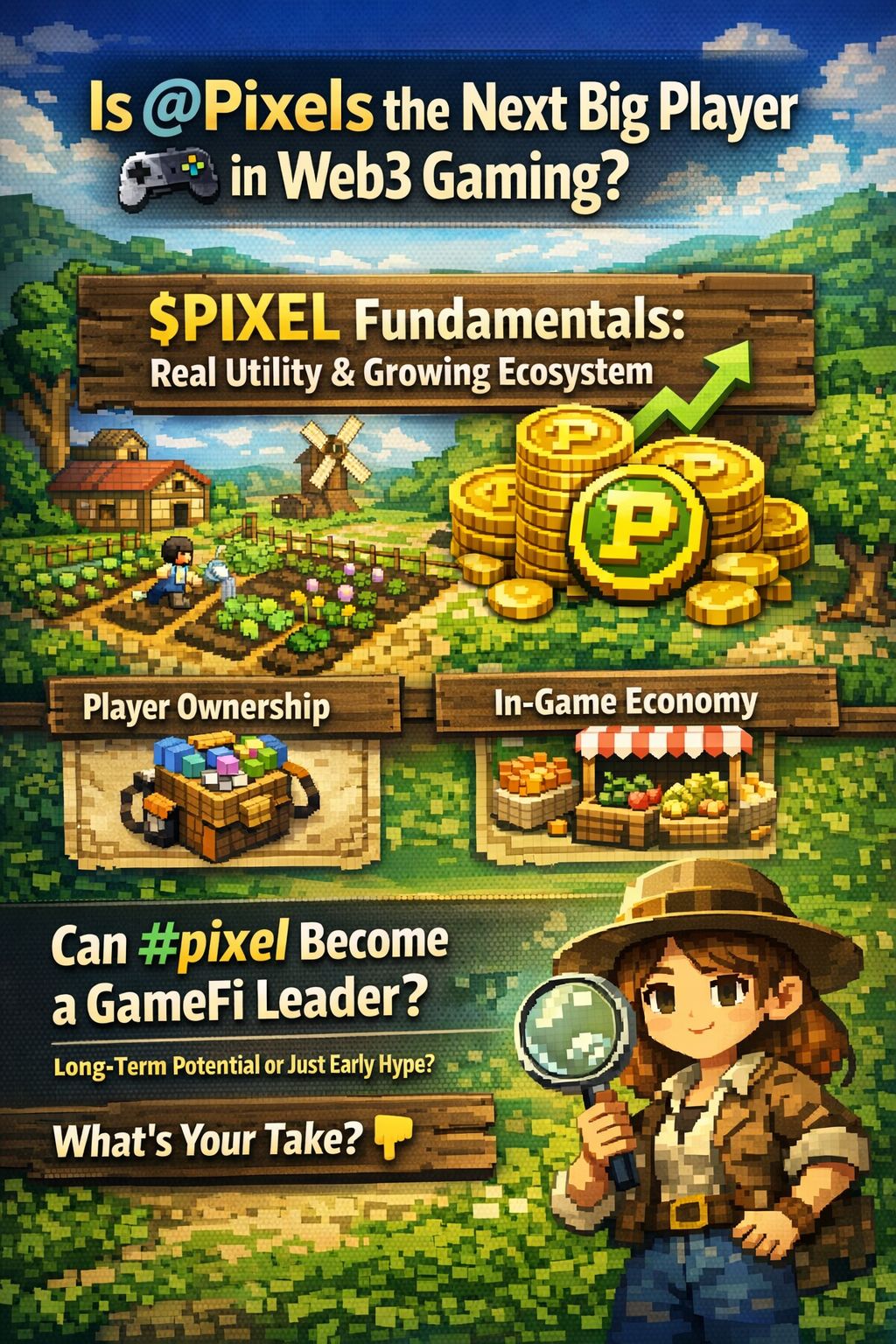 In conclusion, Pixels presents a promising example of how Web3 gaming can evolve beyond hype-driven models. With strong fundamentals such as real utility, player ownership, and an expanding ecosystem, $PIXEL has the potential to become a major player in the GameFi space. However, its long-term success will depend on sustained user engagement and the ability to maintain a balanced, functional economy.