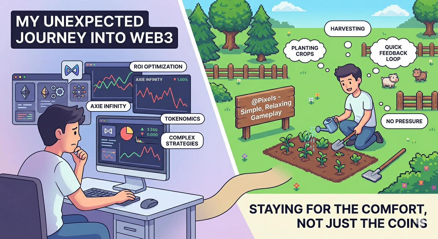 Trước đây mình từng thử khá nhiều game Web3 khác nhau, và cảm giác chung là luôn có một lớp áp lực vô hình. Vào game là phải bắt đầu đọc: token dùng để làm gì, cơ chế reward ra sao, farm thế nào cho hiệu quả, tối ưu ROI như thế nào.
