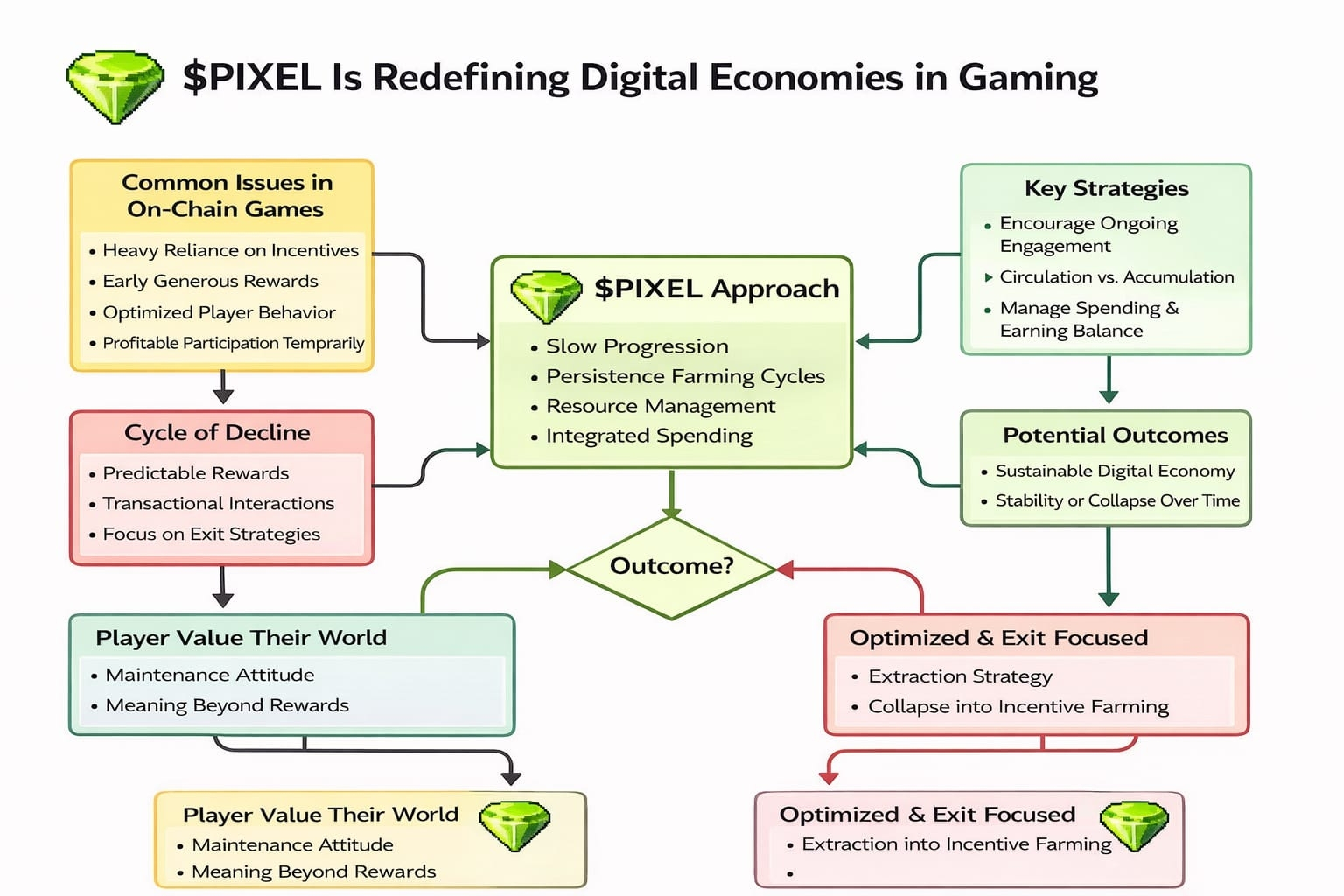 For me, Pixels feels less like a finished solution and more like an ongoing test. It’s asking whether a digital economy can stay active without collapsing into pure incentive farming. That’s not something you can answer quickly. It only becomes clear over time, as the system either holds its shape or slowly drifts into the same patterns we’ve already seen elsewhere.