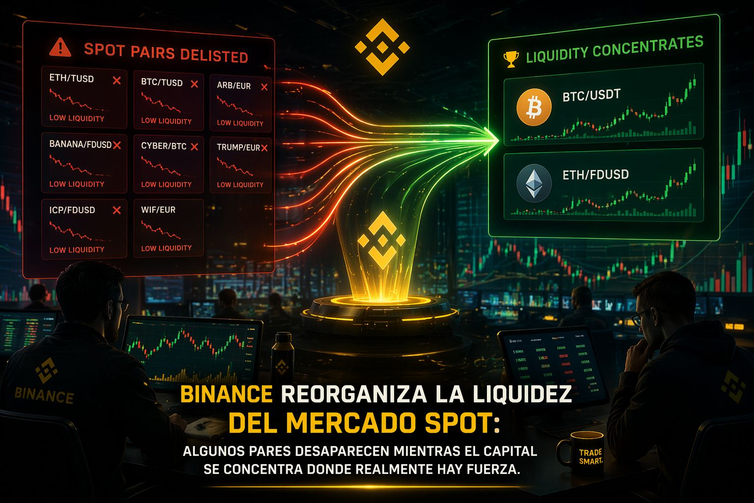 El capital se concentra en pares más fuertes (ej: USDT, FDUSD)