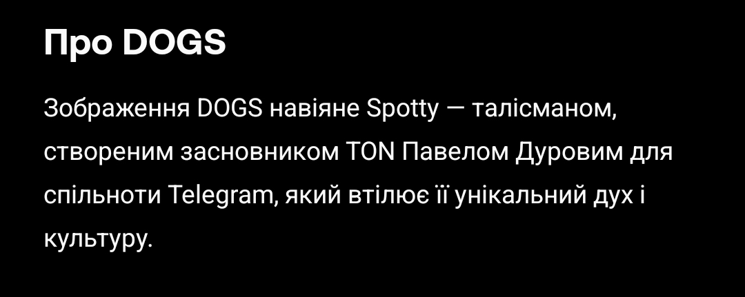 DOGS — це не просто черговий мем-коїн без ідеї. Його концепція напряму пов’язана з екосистемою Telegram та її культурою. Це дає токену певну унікальність серед конкурентів, адже він не існує у вакуумі, а базується на вже сформованій спільноті.