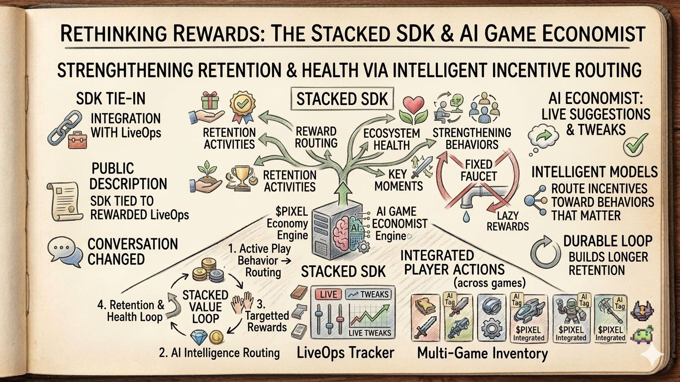 What makes Stacked stand out is that it is not being presented like a normal add-on. Public descriptions position it as an SDK tied to rewarded LiveOps, supported by an AI game economist that can make live suggestions and tweaks. That changes the conversation. Instead of treating rewards like a fixed faucet, the idea is to route incentives more intelligently toward the behaviors and moments that actually strengthen retention and ecosystem health.