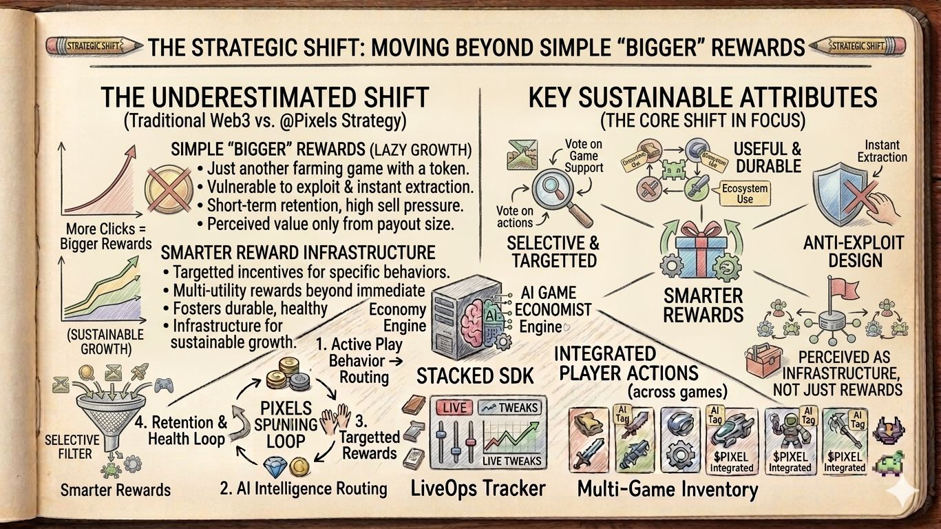 If Stacked keeps improving reward efficiency, and if $PIXEL keeps expanding as the coordination layer across the ecosystem, then @Pixels may end up being remembered less for farming and more for proving that Web3 rewards do not have to be dumb, inflationary, or short-lived.