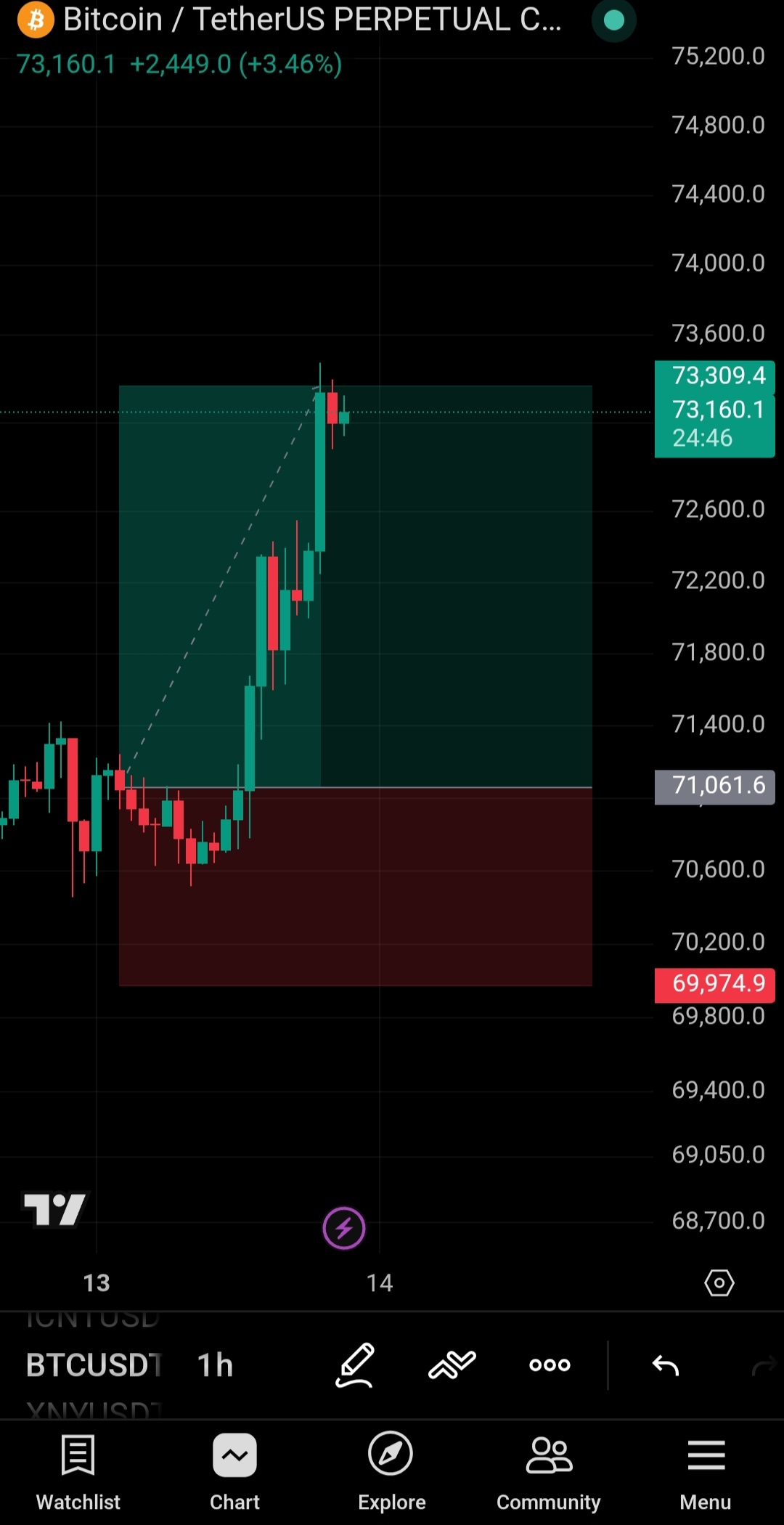 • The Bear Path (Red Line): We break the critical 1H support at $74,000, sending us back to test the previous breakout zone at $73,000.