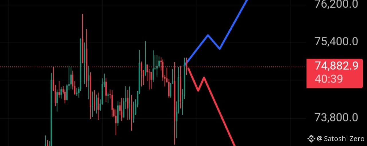 Bitcoin is screaming for attention right now as it consolidates near $74,882. After that brutal rejection from the $76k zone on the 15th, the market has spent the last 24 hours just accumulating liquidity. This usually means a massive move is loading.
