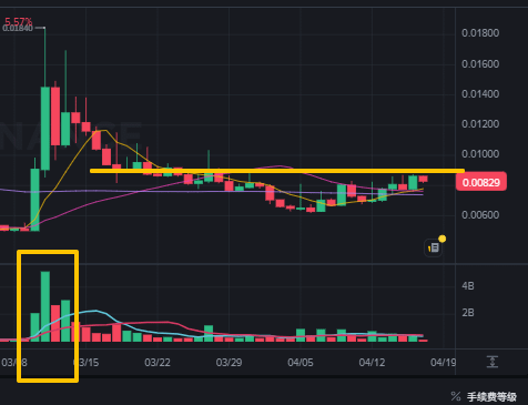 还有个原因是代币PIXEL在上个月其实大涨了一波,当时的成交量也很高,说明在那个阶段是大量套牢盘的。刚好现在0.0083的价位也是前期回调时候的平台位,有不少买盘。他们已经被套了快2周了,现在涨回来了,应该会有一些解套的卖盘压住币价,不好突破。
