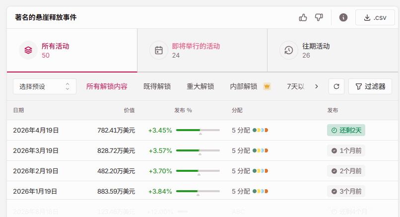第一确实是19号的解锁诱因,可能项目方会拉高币价方便出货,但也有可能是直接出货。我感觉直接出货的概率更大一点,所以安全为主。