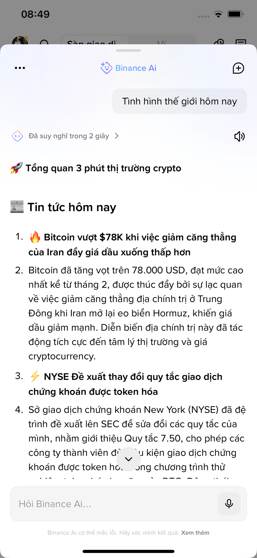Instead of spending hours scouring NYSE bulletins or SEC filings, Binance AI Pro summarizes pivotal changes—such as Rule 7.50 regarding the tokenization of securities—into a few concise paragraphs. This is particularly invaluable for content creators and busy traders who need to grasp the market's "pulse" in the shortest time possible.