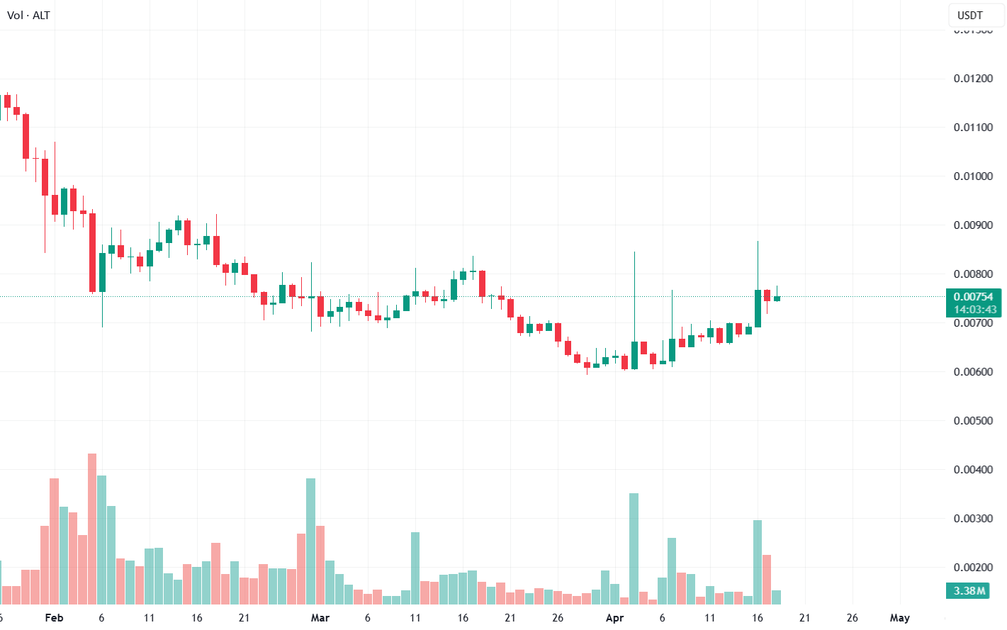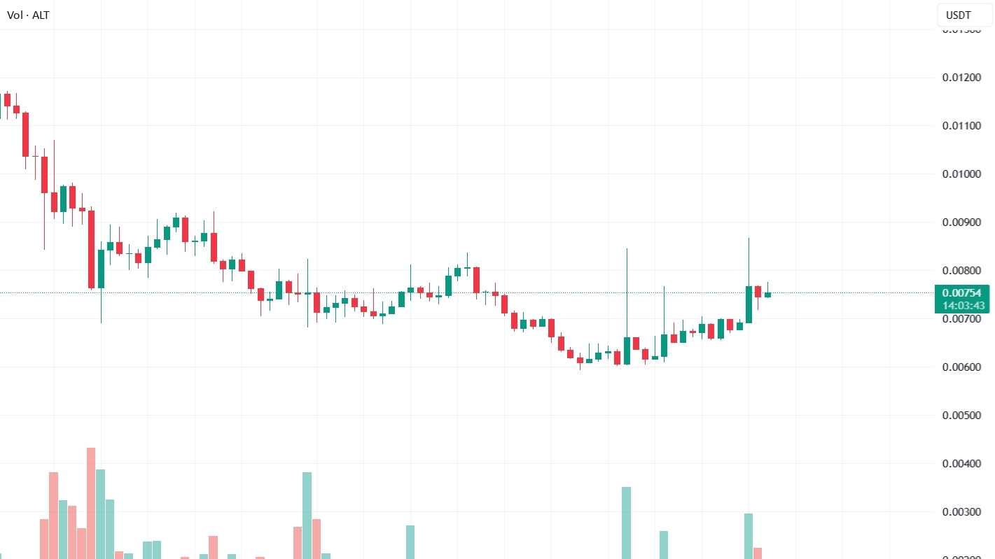 The honest read: ALT shows classic floor accumulation structure — leverage at 5.3% floor, price at 6.4% floor, OBV Strong↑ with Flood reading (3.39 Z), Xtreme Backwardation at -3σ meaning spot holds premium over futures (short-squeeze fuel waiting), Retrace -13% Deep already tagged Recov, Squeeze fired with momentum Con↓ still expanding. The 24:24 signal tie resolves Bull edge via stronger EMA/Candle and the OBV Flood reading is the real tell — paper is being accumulated quietly at the floor. Biggest caution: C>T 4:10 and DD/SS 1:8 still bear-weighted, meaning trend structure hasn't fully flipped yet. This is a patient accumulation setup — wait for volume to activate and C>T to flip green for confirmation. If the Xtreme Backwardation compresses while leverage stays at floor, this moves fast.