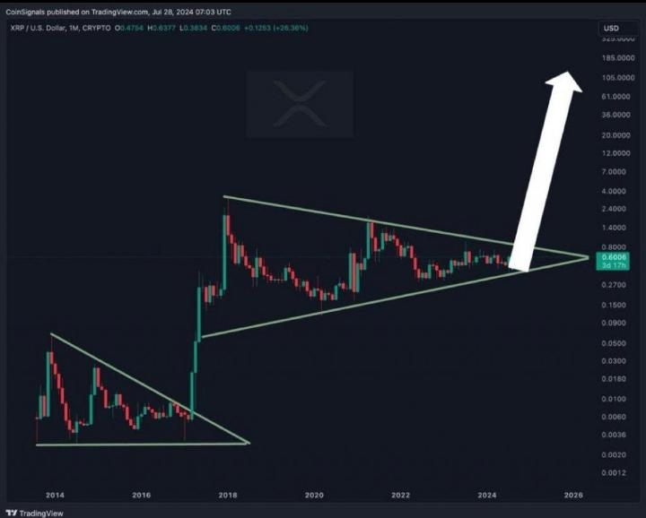 XRP has been forming a massive triangle over time—a classic setup that often signals accumulation before expansion.