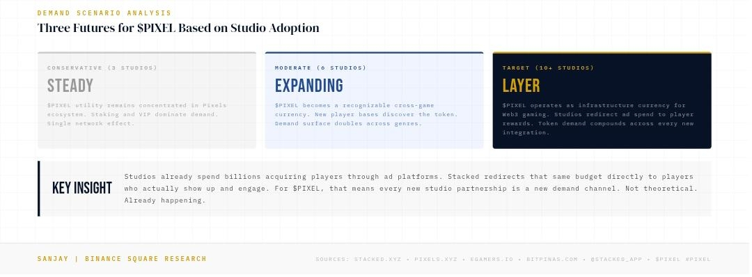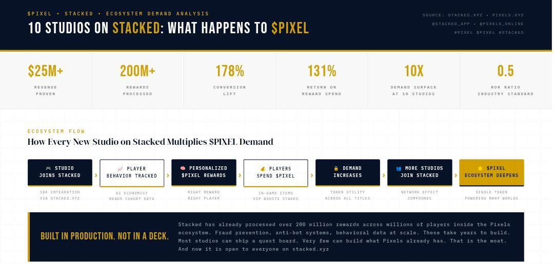 The moment Stacked scales to external studios, PIXEL stops being a single-game token. It becomes a cross-ecosystem rewards and loyalty currency. Every new studio that integrates Stacked adds a new surface where $PIXEL has utility. Every new player across every new game becomes a potential holder. Every reward campain running inside those games becomes a new demand source.