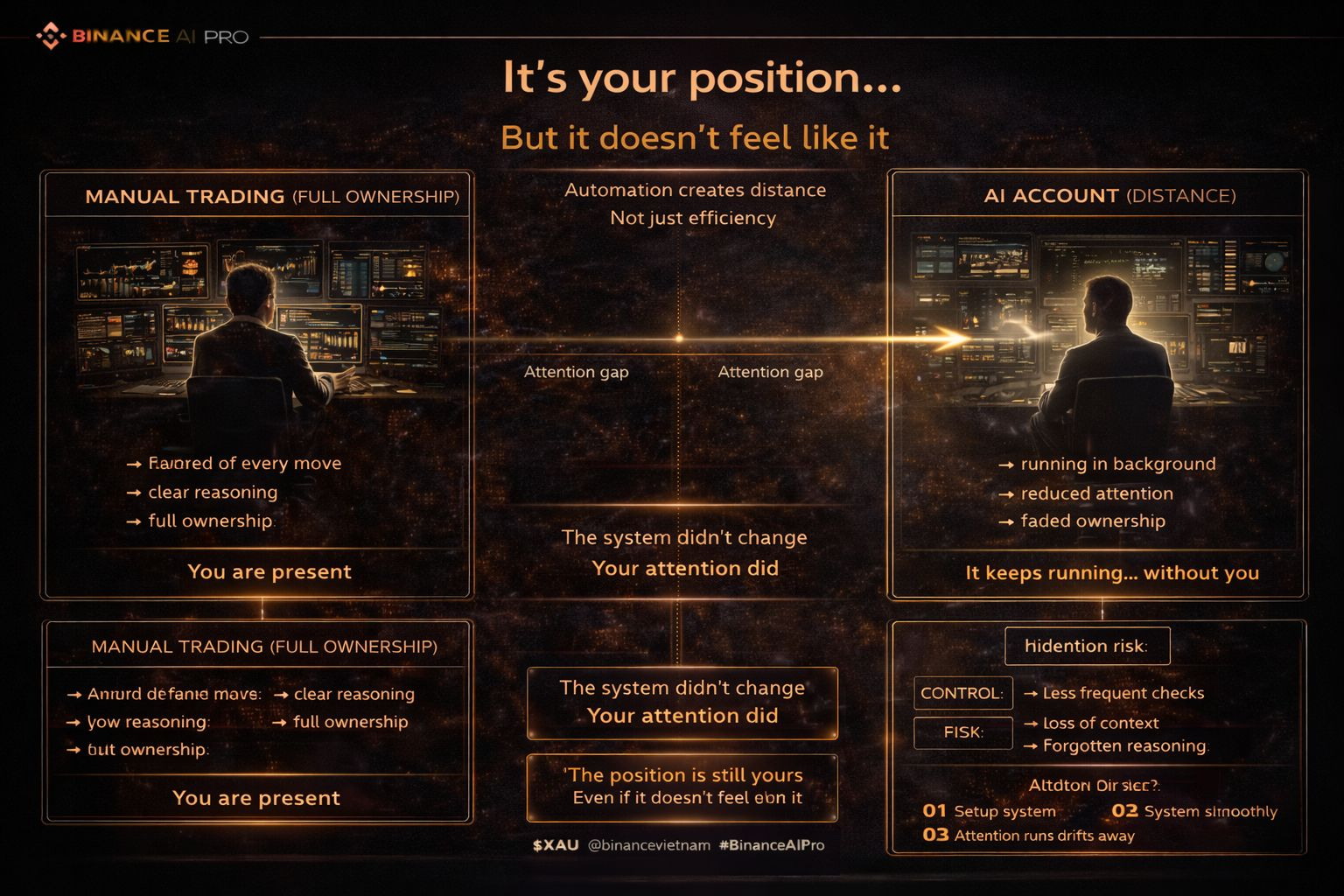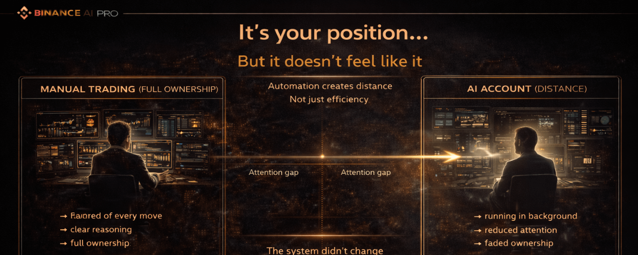 Lúc mới bật Binance AI Pro và nạp tiền vào AI Account, mình check rất nhiều. Gần như liên tục. Mỗi lệnh, mỗi biến động của $XAU, mỗi update… cảm giác giống như bất kỳ tài khoản nào mình trade trước đây. Luôn phải nắm được.
