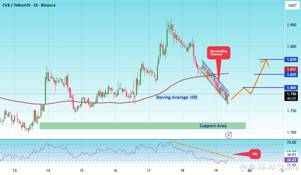 #CVX سعر يتحرك ضمن قناة هابطة على إطار زمني مدته ساعة واحدة وقد وصل إلى الحد الأدنى. إنه الآن في وضع الاستعداد للارتداد ومن المتوقع أن يعيد اختبار هذا الحد.