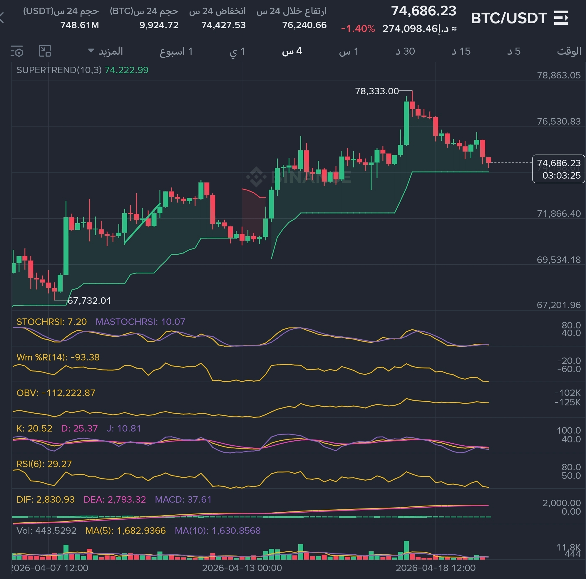 🟡 شراء محتمل بحذر عند 74,000-74,200