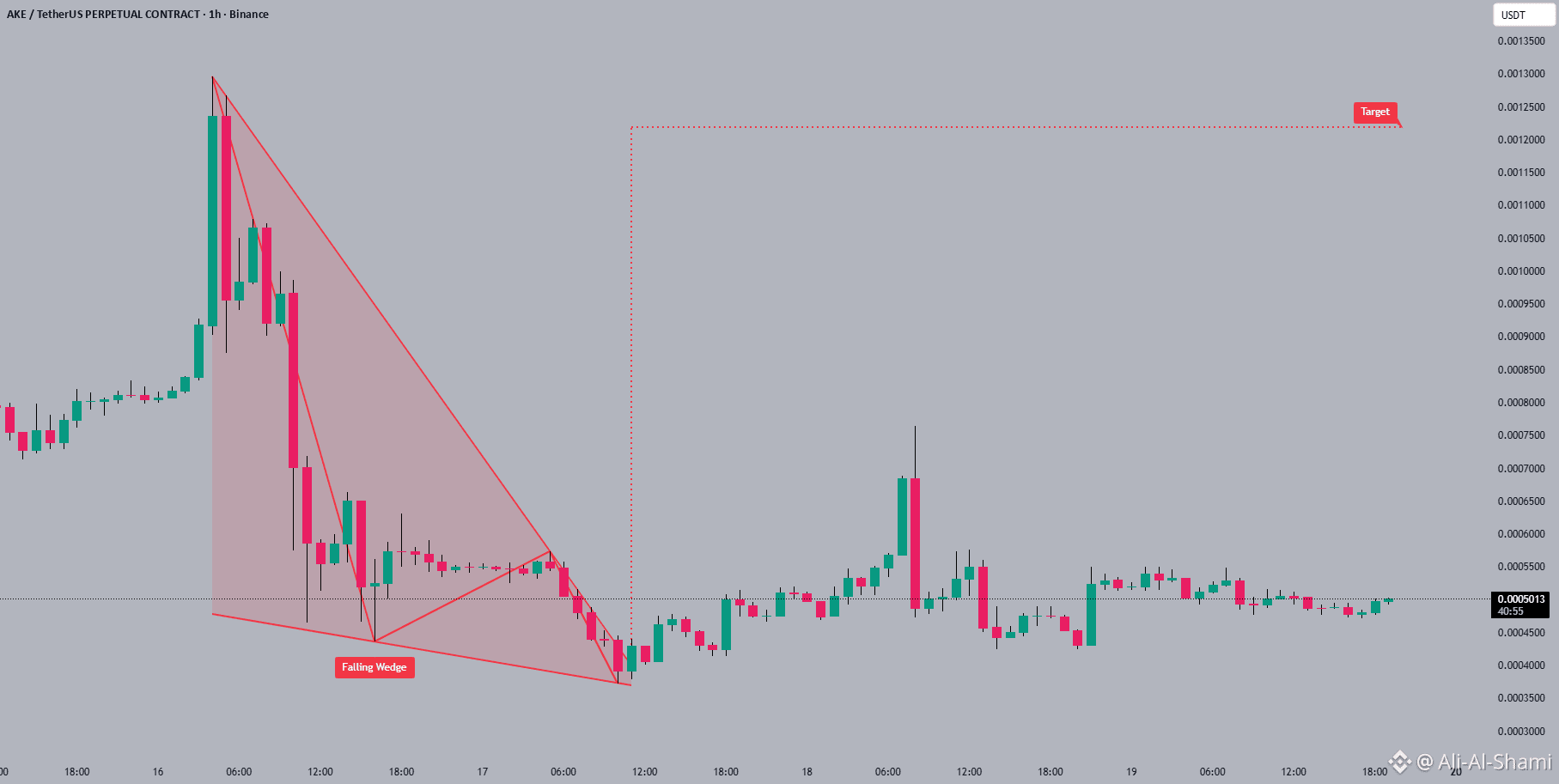 AKE يظهر تماسك جانبي 😴 بعد اختراق نمط وتد هابط. يبدو أن الحجم ثابت، مما يشير إلى استمرار الاهتمام والدعم حول هذا المستوى. الهدف التالي قريب من 0.00125 🚀.
