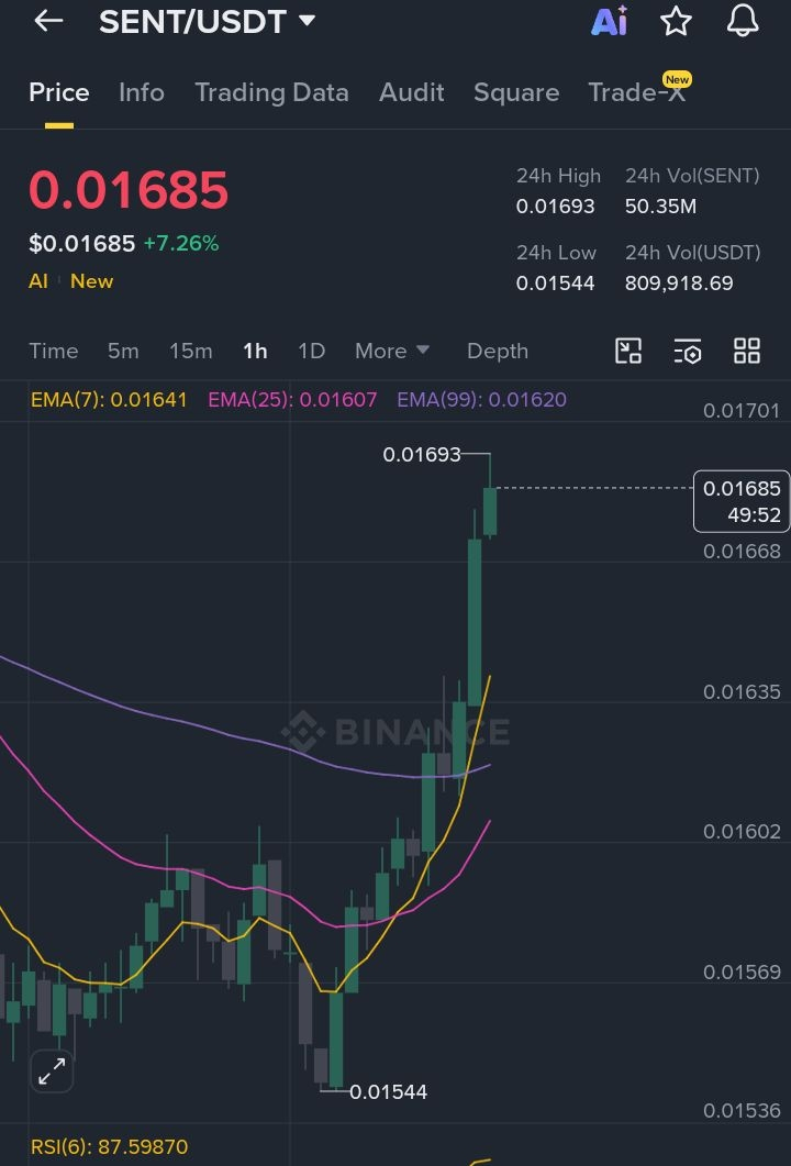 #Sentinel is trading near 0.01685 after a +7% move Price is holding near highs but showing signs of exhaustion