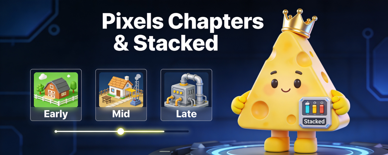 在前幾篇,我們講過 Pixels 不是只停在「爽爽農場」,而是會一路推到工業擴張、跨地合作那種難度。每一個章節,本質上都在換一種「玩家行為模型」。