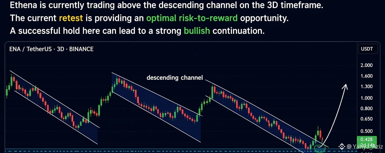 Ethena is currently trading above a descending channel on the 3-day timeframe.