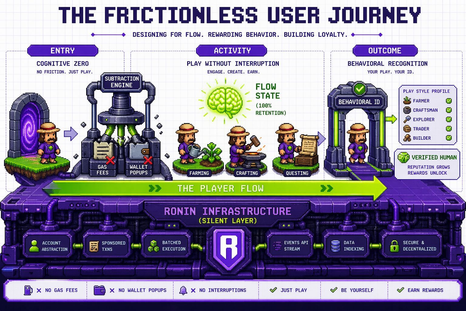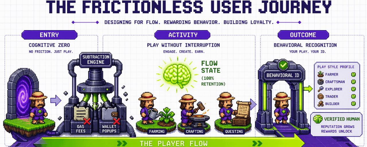 The UX Shift: Harvesting a crop or crafting an item feels like a traditional game action, not a financial transaction.
