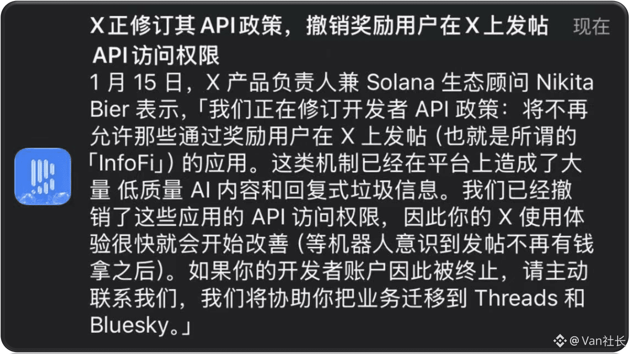 随着X官方切断“引导发帖换取奖励”的接口权限,我们不得不面对一个残酷的现实:推特嘴撸已死,InfoFi正在被迫经历一场血腥的去中心化重构。