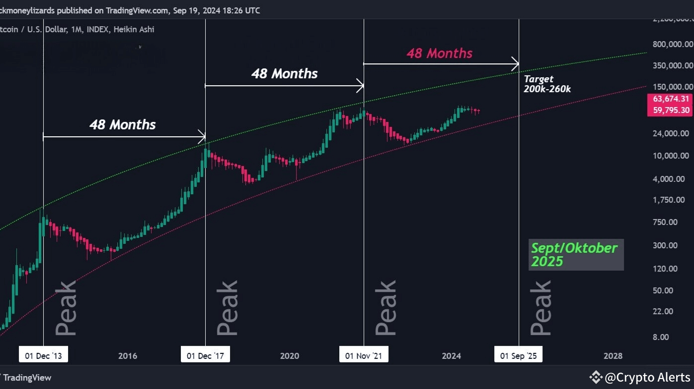 Diesem Muster folgend könnte Bitcoin seinen nächsten großen Höchststand in diesem Bereich erreichen. 📉📈