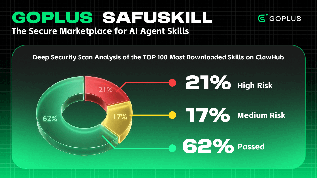 Dieser Sicherheits-Scan zeigt, dass etwa 20 % der 100 am häufigsten heruntergeladenen Fähigkeiten auf ClawHub explizite hochriskante Operationen enthalten, was die Notwendigkeit zeigt, Sicherheits-Scans und Überprüfungen für Fähigkeiten durchzuführen.